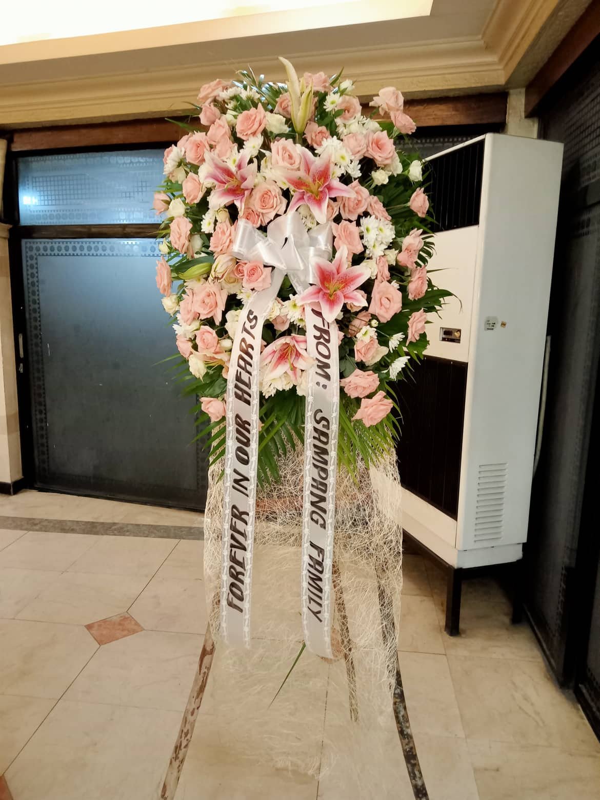 Funeral_Garden of Sympathy"A thoughtful and elegant expression of sympathy, this tasteful basket is a mix of pink roses and spray roses, white hybrid lilies and more.